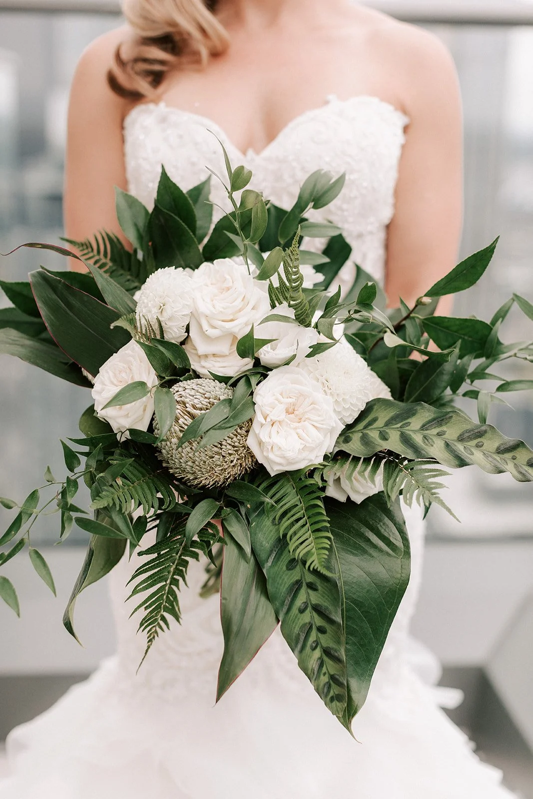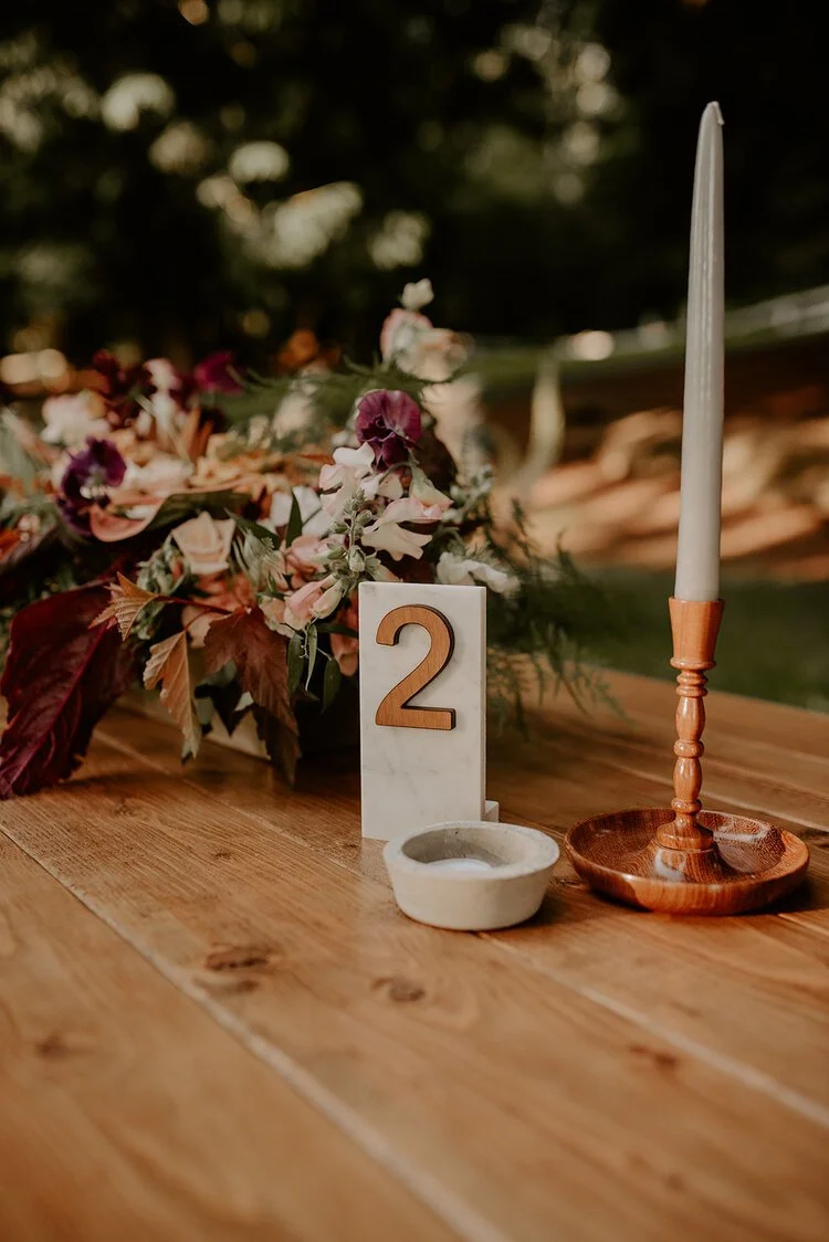 Tatiana and Brittany wanted their guests to enjoy their reception with many different grazing tables, so we kept their flower design pretty simple. They also wanted to keep sustainability in mind.